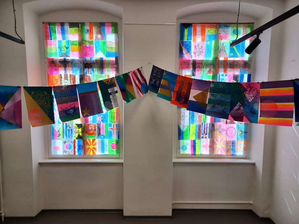 Partout, aux fenêtres, en guirlandes, sur les murs, les élèves